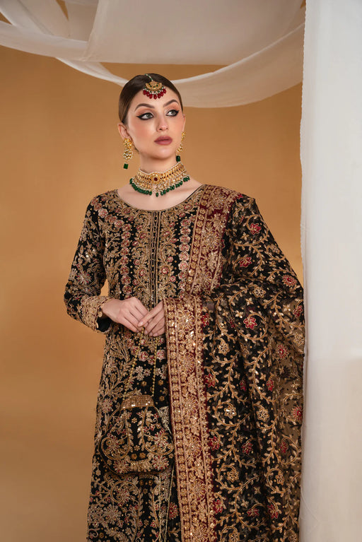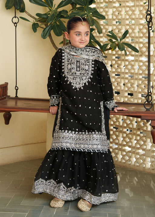 HaseensOfficialDescription Gender: Girl Category: Clothing Outfit Type: Eastern Sub-Category: Gharara Bottom Style: Wide-Leg Gharara Color Type: Black Dupatta Fab...