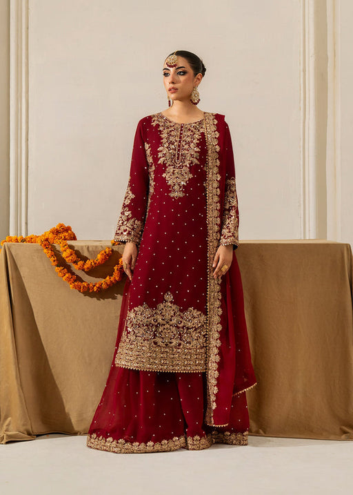 haseensGender: Women Category: Clothing Outfit Type: Eastern Sub-Category: Kurta Set Bottom Style: Trouser Color Type: Red Dupatta Fabrics: Chiffon Lining...