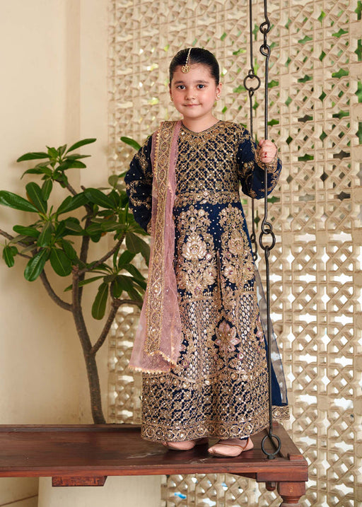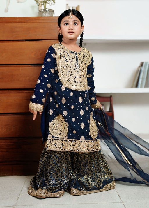HaseensOfficialDescription Gender: Girl Category: Clothing Outfit Type: Eastern Sub-Category: Gharara Bottom Style: Straight Leg Gharara Color Type: Navy Blue Dup...